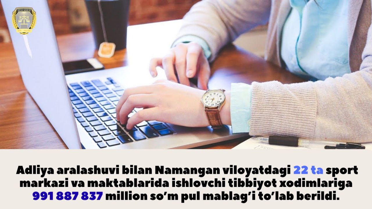 Adliya aralashuvi bilan Namangan viloyatdagi 22 ta sport markazi va maktablarida ishlovchi tibbiyot xodimlariga 991 887 837 million so’m pul mablag’i to’lab berildi.